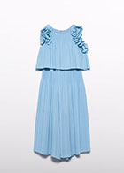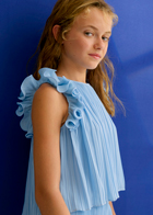 Conjunto Abel y Lula compuesto por top y pantalón en tejido plisado de color celeste
