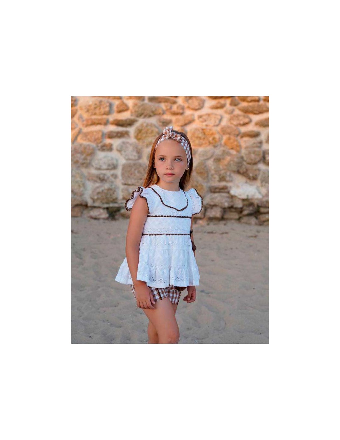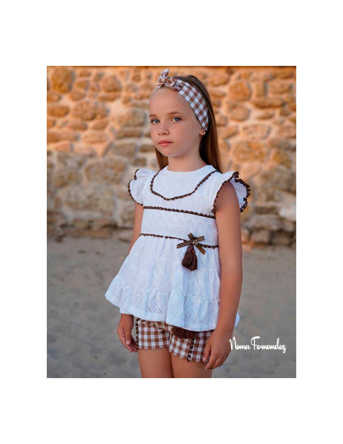 Conjunto Niña Short y Blusón Vichy Marrón Familia Tilo Primavera-Verano Noma Fernández 2026