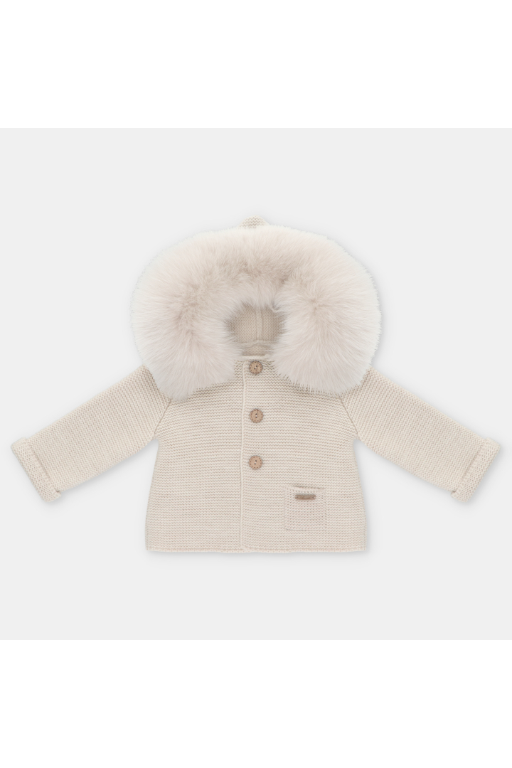 Trenka de Martín Aranda de punto en color beige con pelo alrededor de la capucha