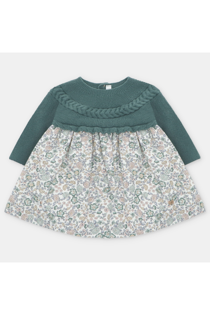 Vestido Martin Aranda con cuerpo de punto en color verde y falda estampada a tono con el cuerpo.